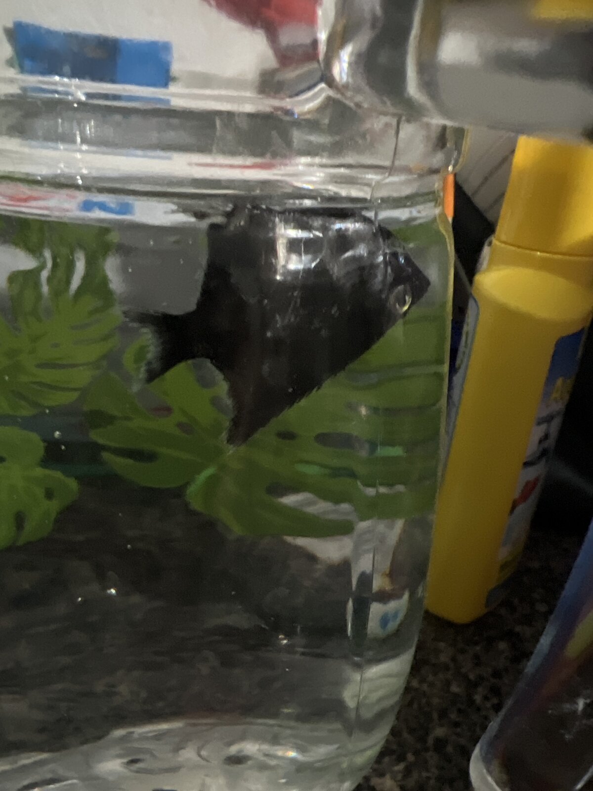| Urgente Que le pasa a mi pez ayuda (foto) Hace días vengo viendo que mi. Pez ángel de 6 años no come pero mas de un mes y yo pensé que no puede sobrevivir un mes sin comer así que algo come pero resulta que antes él se acercaba a la superficie para que yo le diera y luego ya no ..ahora le hice un cambio de agua casi total por que se le puso muy fea como amarilla y luego lo puse agua limpia con todo lo que ocupa le puse él anti cloro azul de metileno pero muy poco unas gotas por que aquello de los hongos ..eso fue hace 3 días y hoy esta solo en la superficie boqueando no come y anda como lento hasta deja que lo toque , no se que le pasa no se que hacer , él flutro que tiene es muy fuerte entonces se lo bajo para que no lo golpeé pero no se que significa que este así , que me recomiendan ?? | |