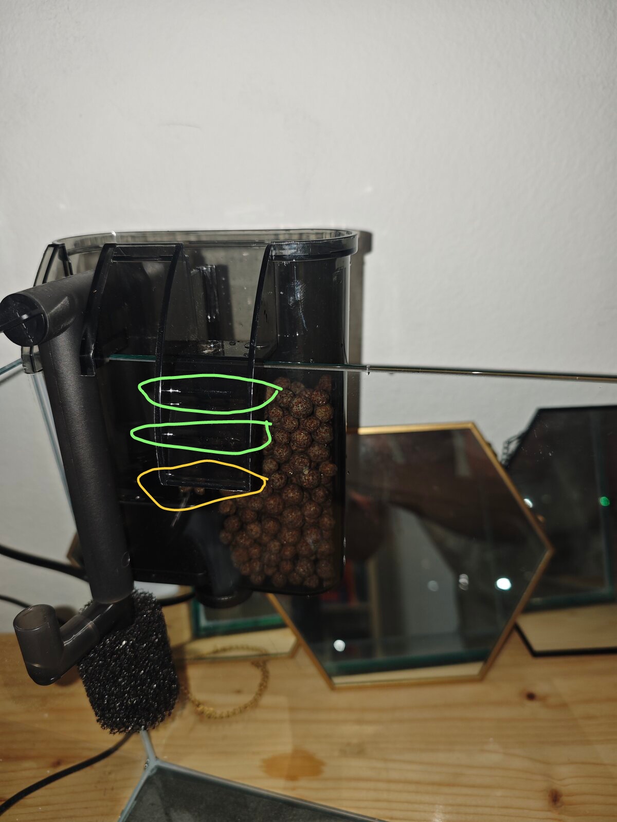 Duda filtros Hola buenos días, tengo un acuario de 180 litros con 3 goldfish, se que lo ideal sería un filtro externo pero ahora mismo económicamente no me lo puedo permitir, tengo dos filtros de mochila funcionando en el acuario, un tidal 55 con medio kilo de matrix de seachem, medio kilo de canutillos de sera y una esponja, y por otro lado, tengo un Eheim liberty 200 con perlon y dos esponjas, el tidal mueve 1000l/h y el el eheim unos 700l/h. Lo veis suficiente filtración? | |