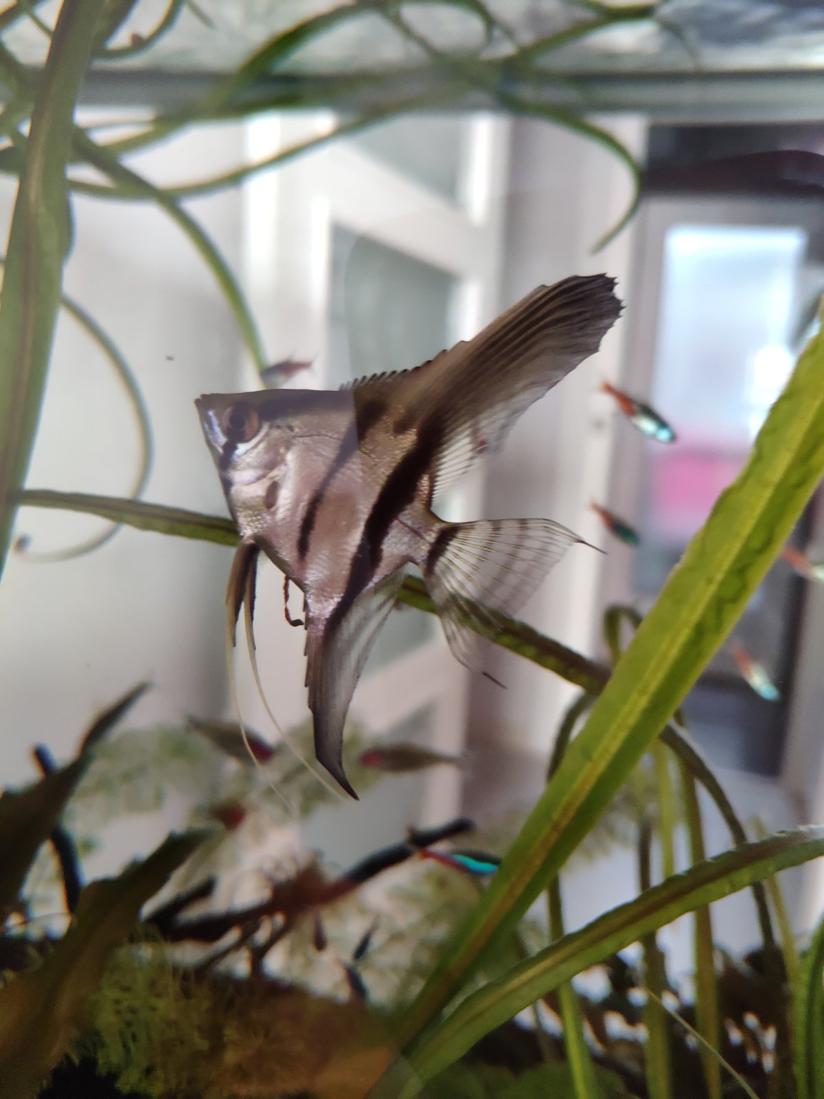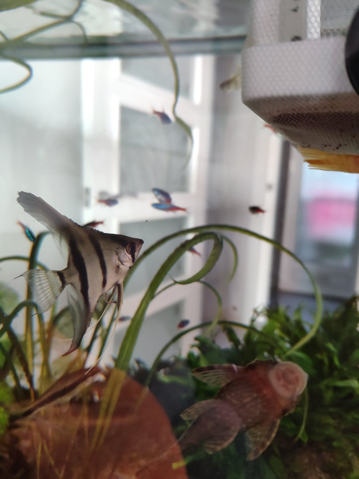 | Parásitos en mis peces? Holaa amigos, tengo un problema con parásitos según yo, vengo humildemente por su opinión!.Tengo un acuario de 250L, plantado tiene al rededor de 4-5 meses de estar funcionando tengo 1 gurami, 4 espadas, 5 corydoras, 5 ángeles y 3 mollys, no había tenido mayor problema con este acuario ☺️ pero... Estos últimos días me he percatado de algunos síntomas o señales que me dan mis pecesitos-Algunos defecan grandes tiras largas a veces transparentes y aveces con algo color-Estan perdiendo escamas (poquitas)-se rascan contra las rocas y ramas-algunos tienen sus aletas con manchas (no puntos) blanquecinas, son pequeñas, pensé que así eran los peces pero he visto como se está propagando por todos mis peces.-OJO ayer encontré un gusanito blanco pegado a un pez espada creo que le dicen "Gusano Ancla"-Ahora veo diminutos puntitos blancos en mis peces (he subido la temperatura y agregue un poco de paraguard pero aún así estos puntos siguen ahí)-tal vez es mi preocupación pero miro a mis peces tristes... Más calmados, mi... | |